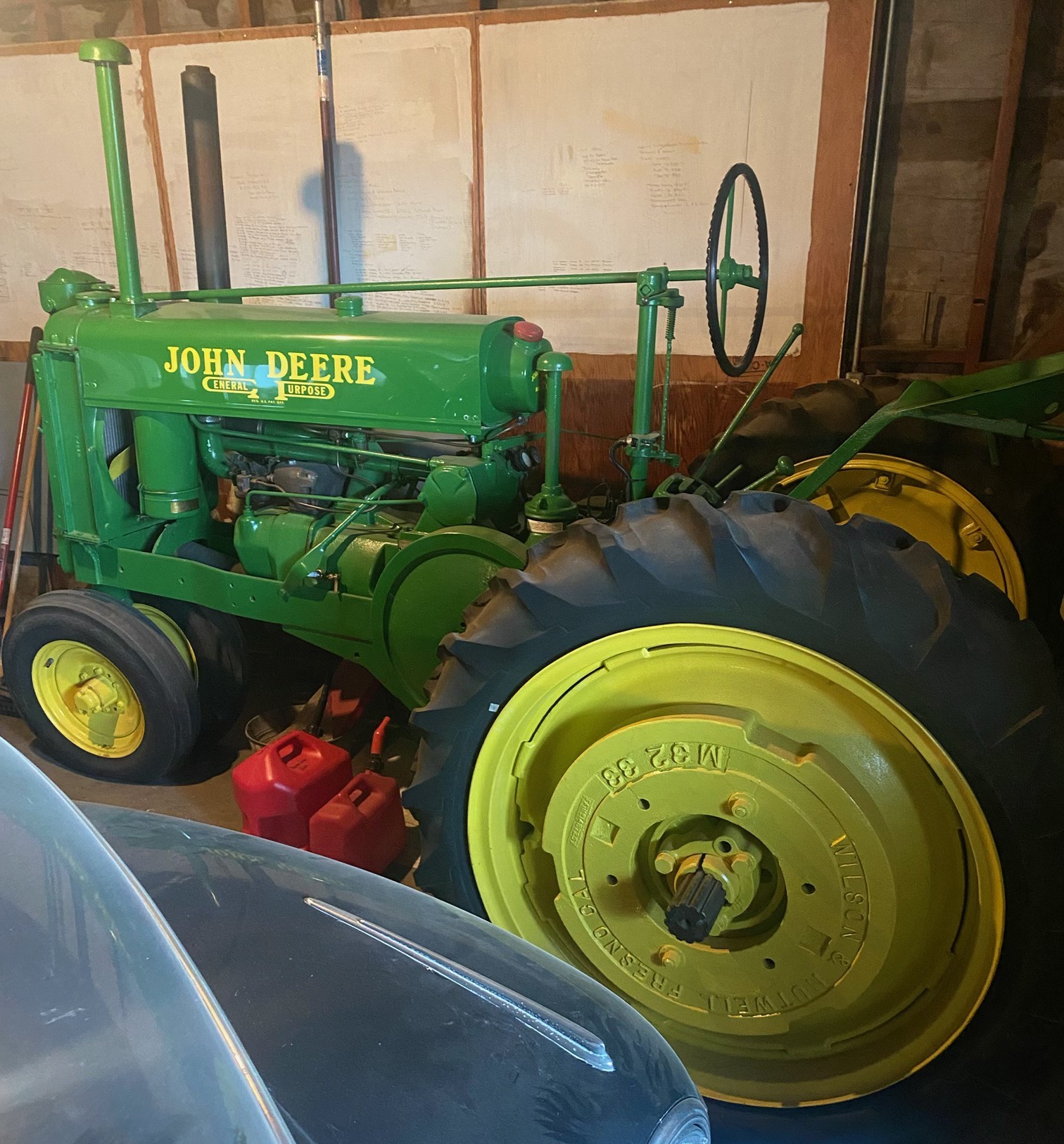 1939 John Deere Unstyled Model G for sale. Serial number 5667. Row crop tractor. Hand crank start. Large radiator series. PTO and hitch. Fully restored and in good condition. Stored inside. California location – buyer provides transportation.