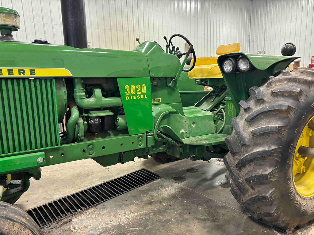 3020 diesel utility, SN 113554, front weight, one slab, two hydraulic outlets. 3010 standard diesel, SN 23630, two rear weights each side plus front slab. 730 standard, SN 7301263, with pony motor, both motors gone through. 1941 H, electric start, good tires. All of these have straight tin, New Generation tractors have excellent paint, two cylinders have good paint.