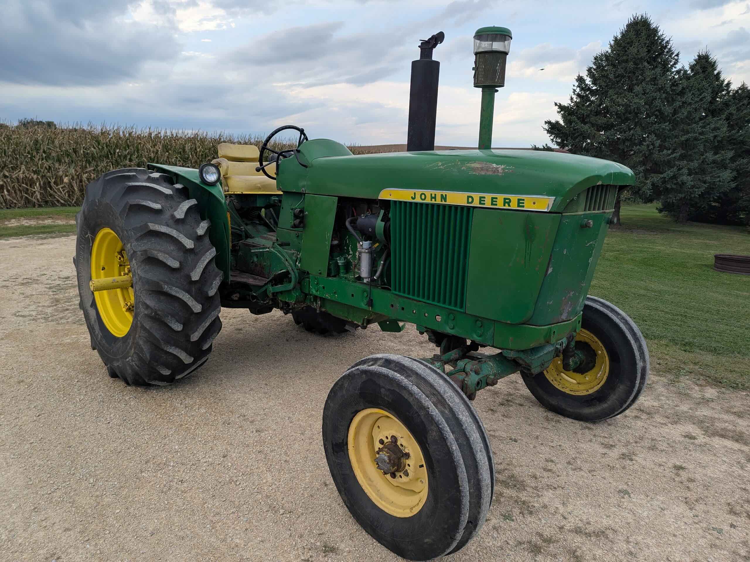 1967 John Deere 3020 utility Power Shift, SN T141P108949R, good working Power Shift transmission, dry air cleaner, dual factory hydraulics, rear tires 85%, front are usable